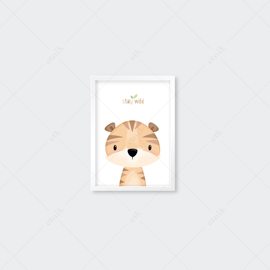 Cuadro con marco encajonado. Impresión en alta calidad con laminado glitter en acabado mate. Peso ligero, no incluye vidrio para mayor seguridad en un espacio infantil. El material es fácil de limpiar.